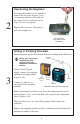 Installing the Battery Pack Note: To enhance battery life, SKC ships battery packs separate from the pump. Once installed, completely charge battery pack before operating pump. 1. Loosen the two case screws above and below the belt clip. 2. Slip the front edge of the battery pack under the belt clip and position battery pack to engage the grooves in the case. 3. Slide battery pack toward the pump until it is flush with the pump case on all sides. 4.