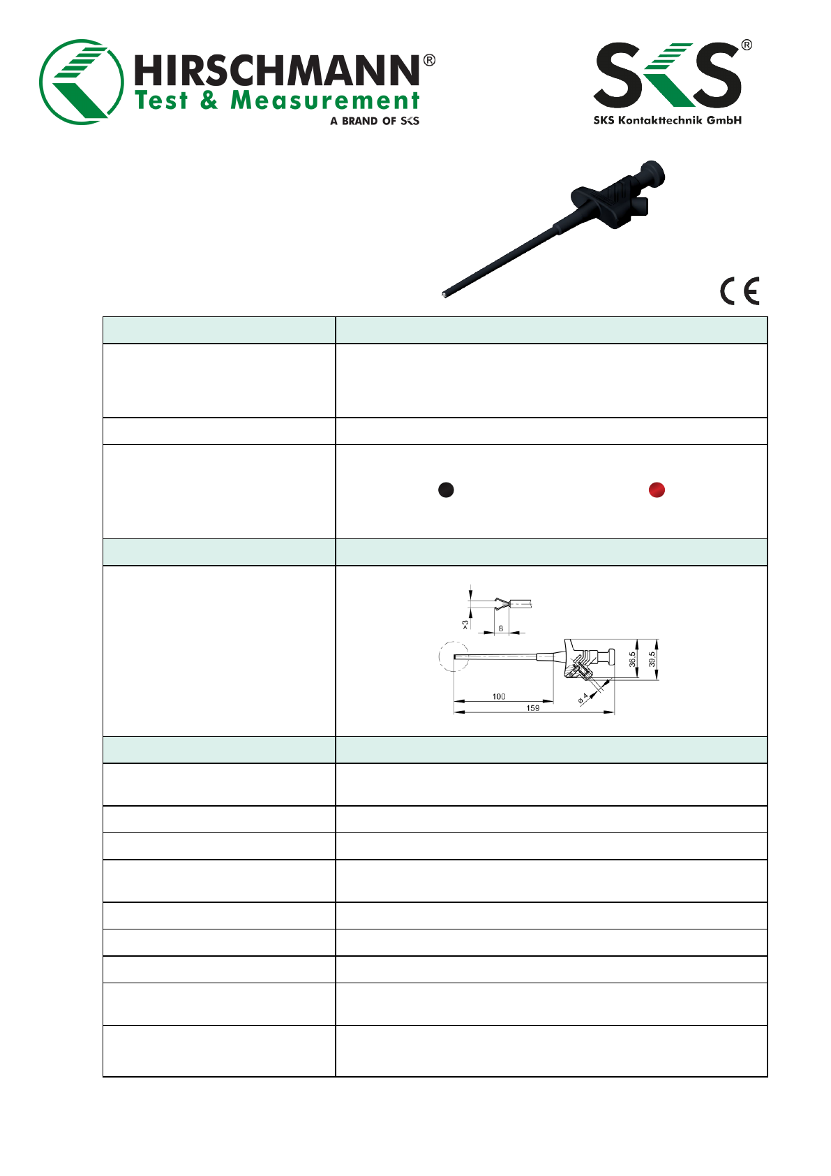 Beschreibung Klemmprüfspitze mit drehbarer Greifzange und flexiblem Schaft. Durch die