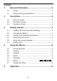 Content 1 General Information ..............................................2 1.1 1.2 2 Safety warning and Attentions....................................... 2 Your phone ............................................................3 2.1 2.2 2.3 3 Phone overview ............................................................ 3 Functions of Keys ......................................................... 4 Functions of icons ......................................................... 4 Getting started ........