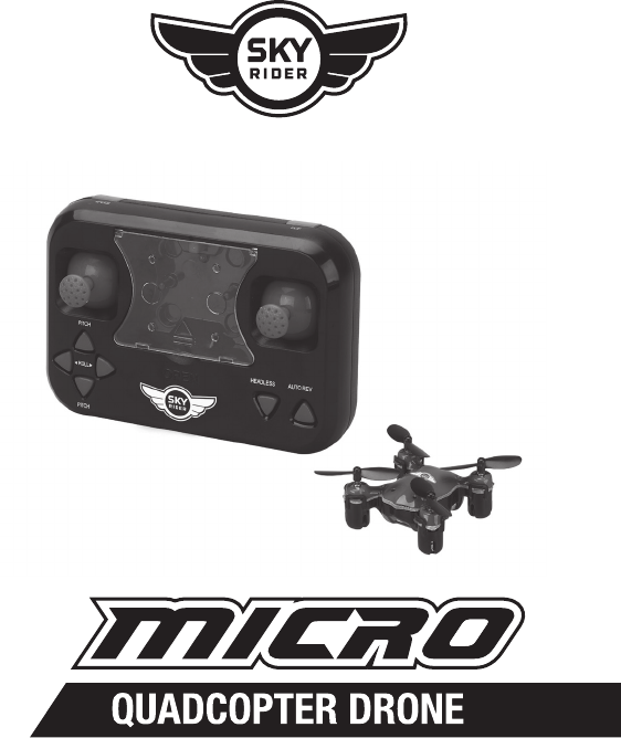 Table of Contents SkyRider Micro – 5 Flying Tips & Features – 14 Features Includes Tips for Safe Operation Speed Setting Flips & Tricks Headless Mode Auto-Reverse Overview – 6 Craft Layout & Features Remote Control Repair – 16 Batteries & Charging – 8 Parts Replacement Rotor Replacement Battery Charging Procedure Remote Control Batteries Troubleshooting – 18 Flying – 10 Customer Support – 19 Craft/Remote Link Contact Information International Support Warranty Trim Adjustment – 12 Setting Trim
