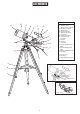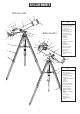AZ1 & AZ2 MOUNTS Refractor/AZ2 B C G D F E AZ2 A A. Dust Cap / Mask (Remove before Viewing) B. Dew Cap / Sun Shade C. Objective Lens D. Telescope Main Tube E. Finderscope F. Finderscope Bracket G. Alignment Screws H. Focus Locking Screw I. Eyepiece J. Diagonal K. Focus Tube L. Focus Knob H I 5 Reflector/AZ1 4 1 J K 2 3 E L D a F 1. Altitude fine-adjustment control 2. Azimuth Lock 3. Yoke Mount 4. Altitude Lock Knob 5. Yoke Locking Knob G C H B I a. Accessory Tray b. Tripod Leg c.
