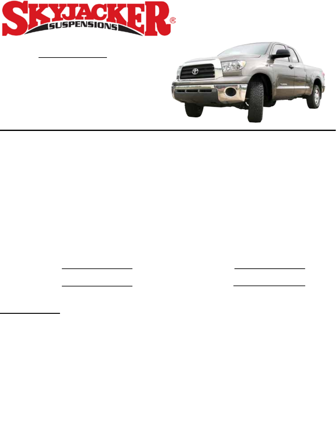 to the disassembly of the vehicle. If any parts are found to be missing, contact SKYJACKER
