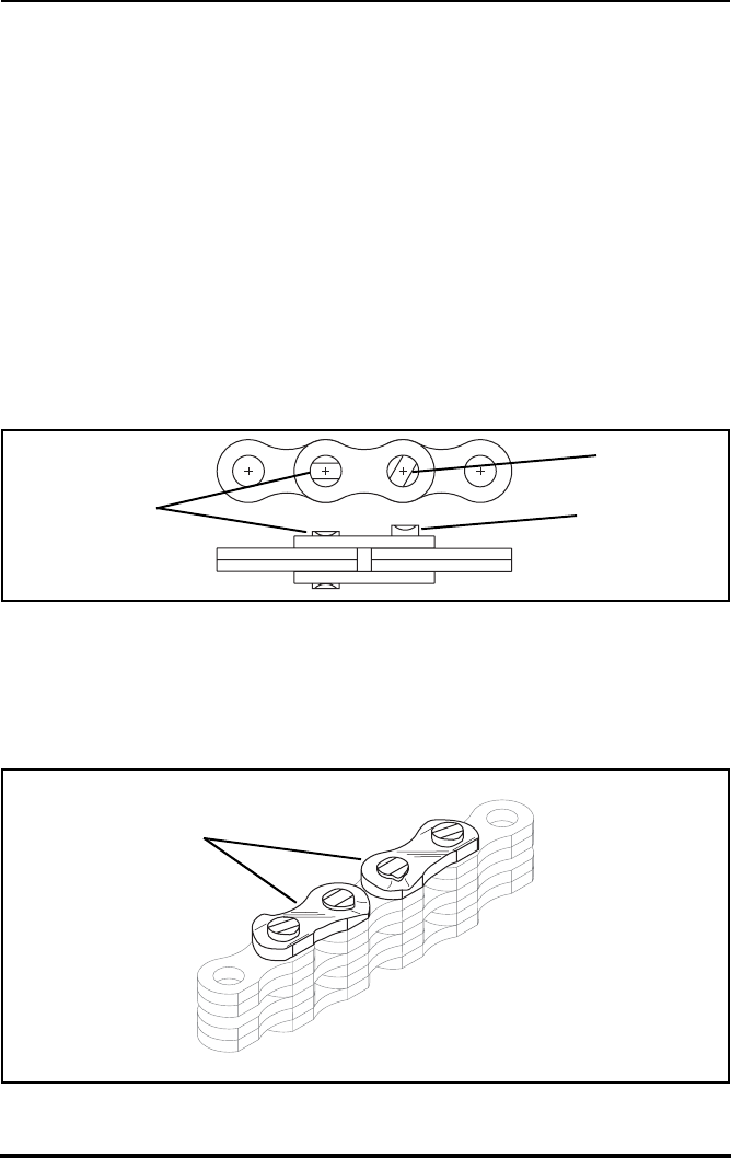 Distorted or battered link plates (Figure 104, 1) on a leaf chain can cause