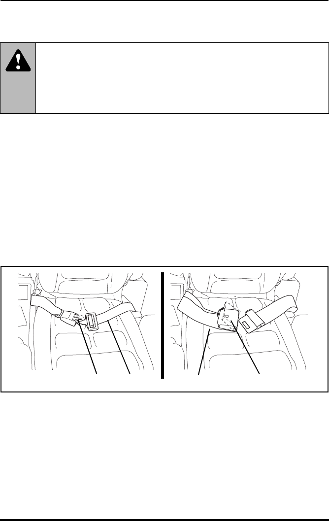 worn webbing, or any defect in the latch assembly. If any wear or damage is