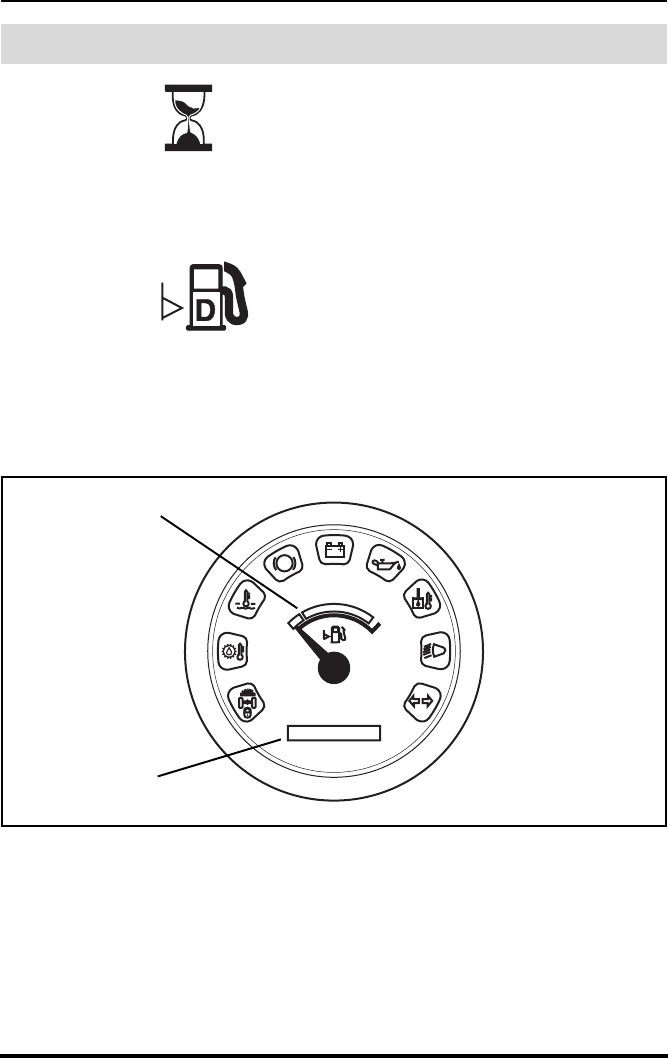 The hourmeter (Figure 16, 1) records engine operating hours and has a