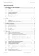 SMA Solar Technology AG Table of Contents Table of Contents 1 2 3 Information on this Document................................................. 5 1.1 1.2 1.3 1.4 1.5 1.6 1.7 1.8 5 5 5 5 6 6 7 7 Safety ........................................................................................ 8 2.1 2.2 8 9 Intended Use .............................................................................................................. IMPORTANT SAFETY INSTRUCTIONS..........................................