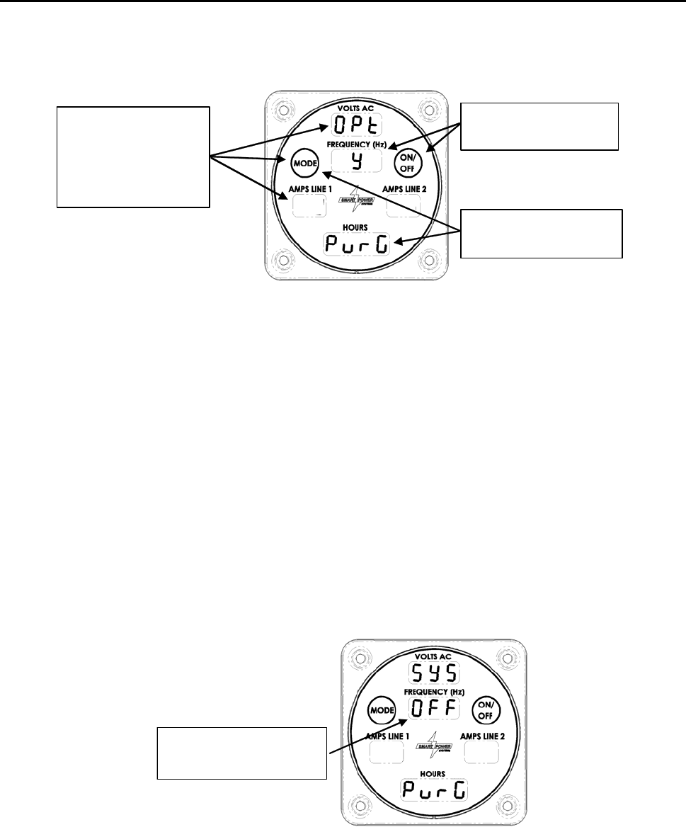 5. Press the On/Off switch until a y appears, indicating Purge option is
