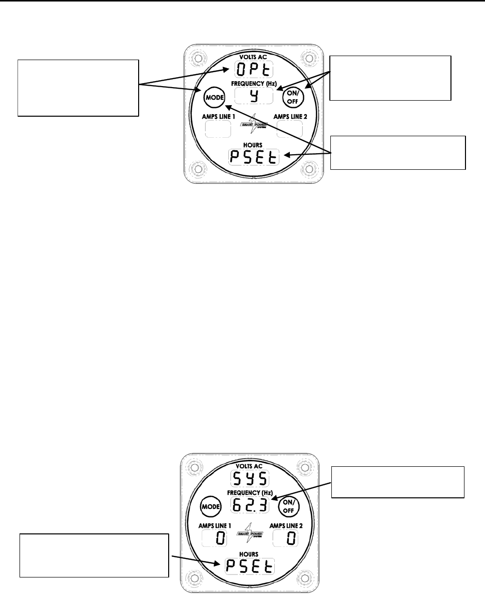 d. Press the On/Off switch until a y appears, indicating Pump Set option is Active.