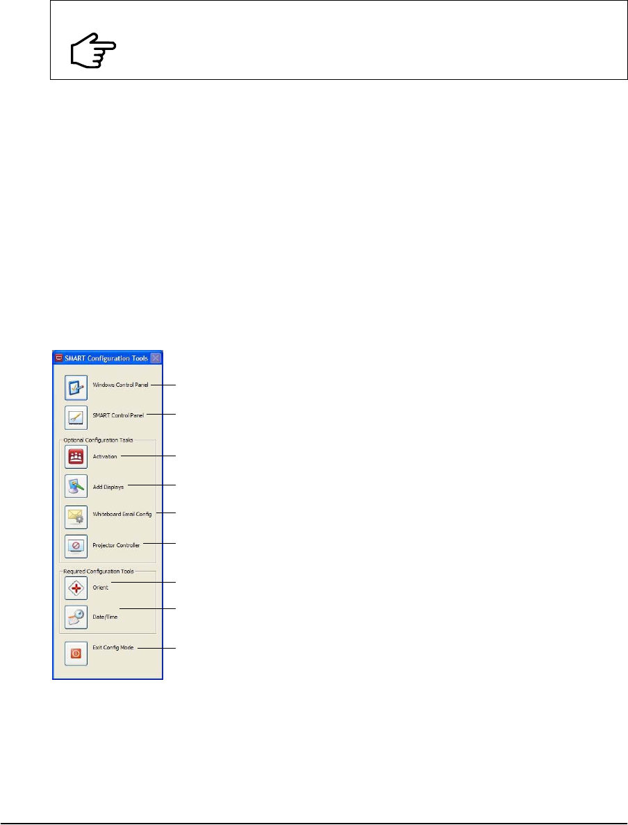 The SMART Configuration Tools dialog box appears on the display when you’re in