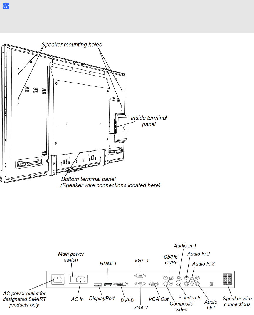 The back of the interactive flat panel includes the bottom terminal panel, the inside terminal panel and