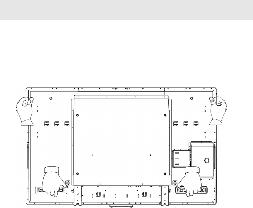 l Carry and lift the interactive flat panel by gripping the handles and sides.