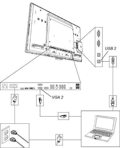 2. Connect a VGA video cable to the VGA2 interactive flat panel receptacle on the bottom