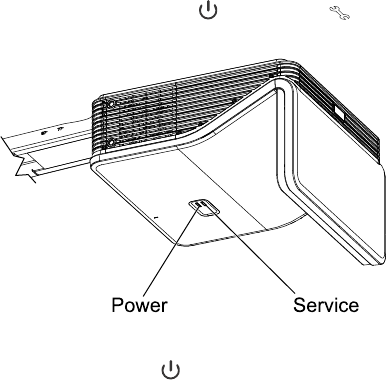 Your projector’s Power and Service lights are located on the bottom of the projector.