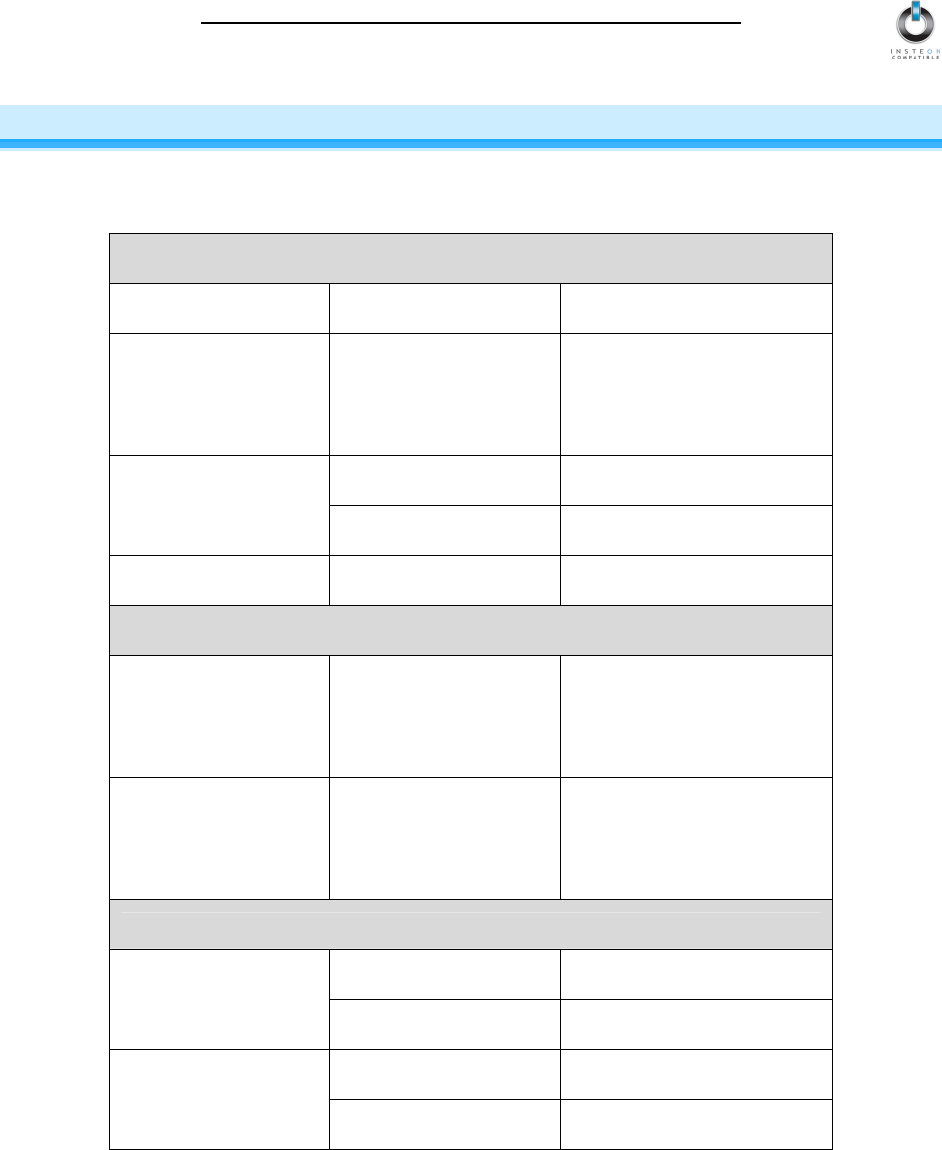 The following table summarizes the setup options for RemoteLinc as described in the previous sections.