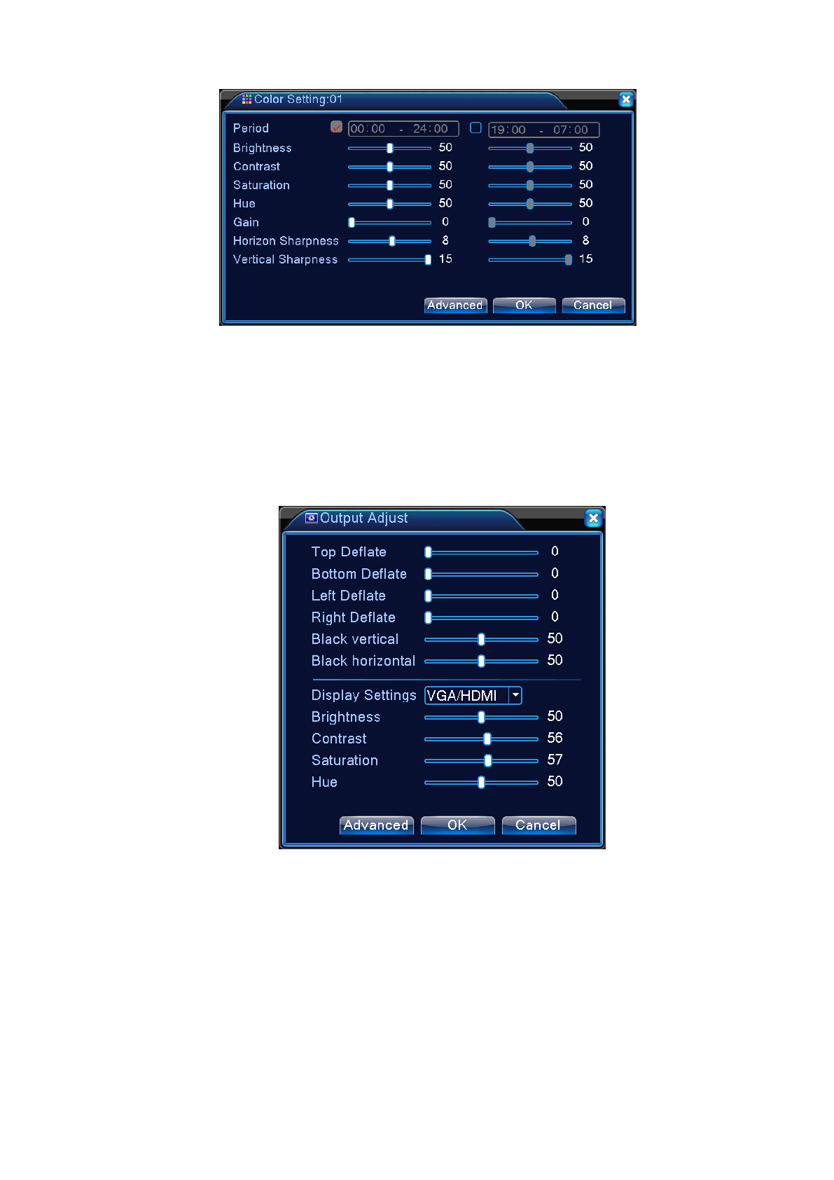 Ga voor het aanpassen van de parameters van het gebied voor uitvoer naar TV naar de interface