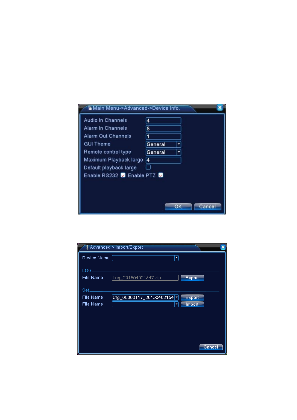 Geeft informatie over het apparaat informatie in de interface van de DVR voor het gemak van de