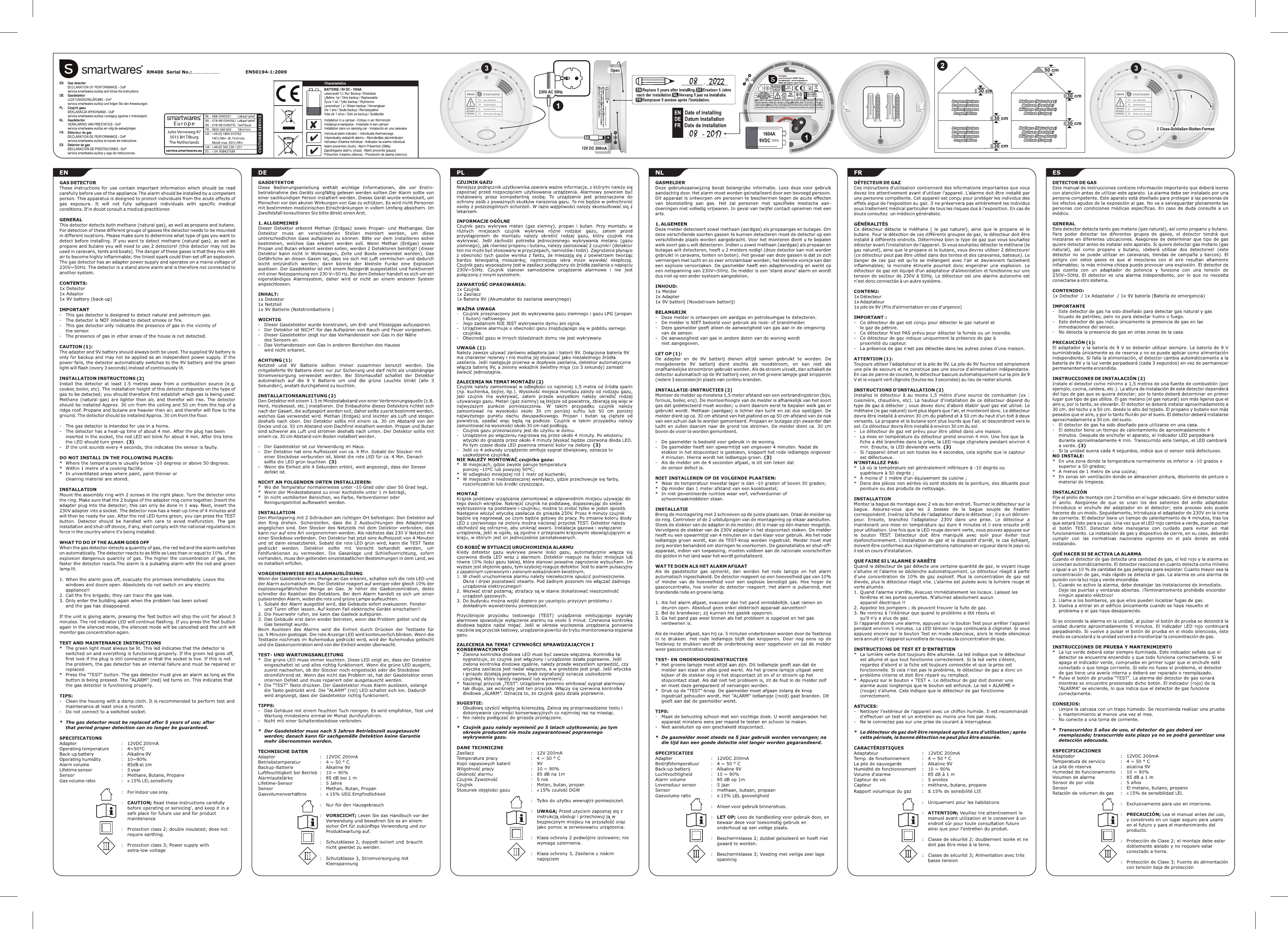 Gas detector Set mains-powered detects Butane, Methane, Propane