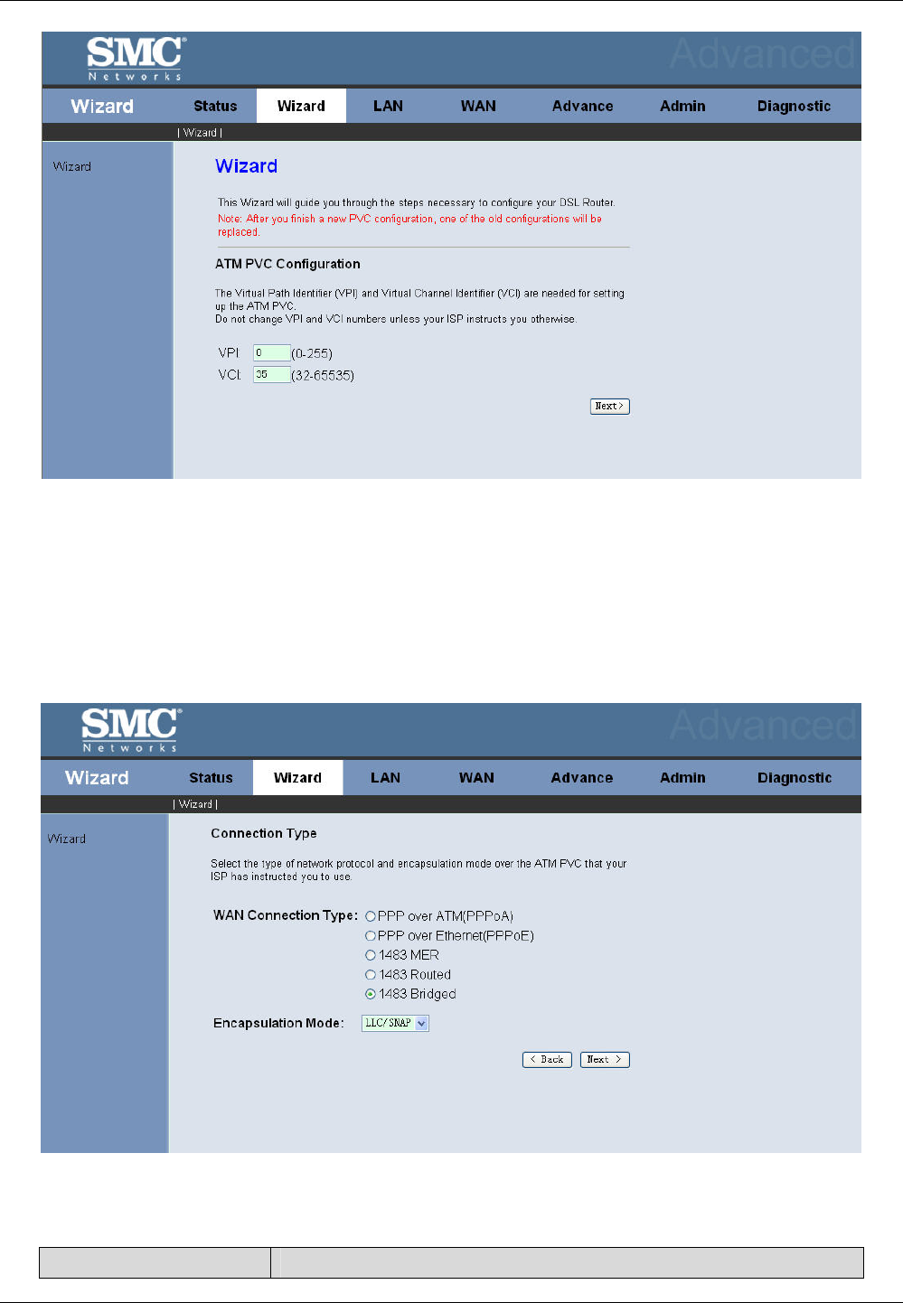 assigned to you. The valid range for VPI is 0 to 255 and for VCI is 32 to 65535(0 to 31 is reserved for local