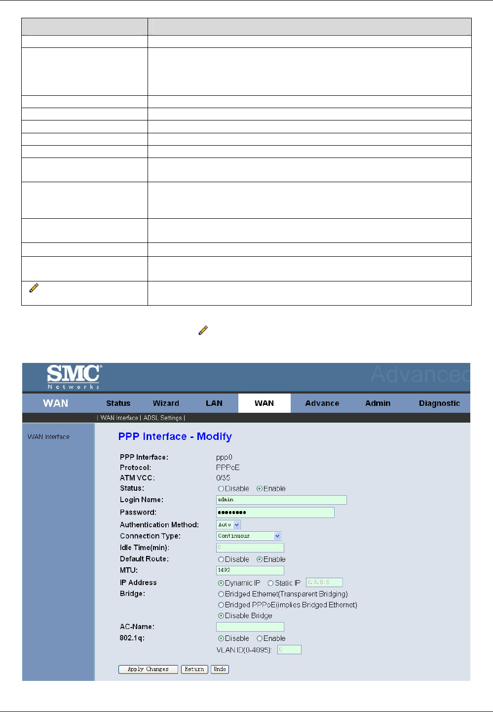 Modify Select a PVC in the Current ATM VC Table, and then modify the