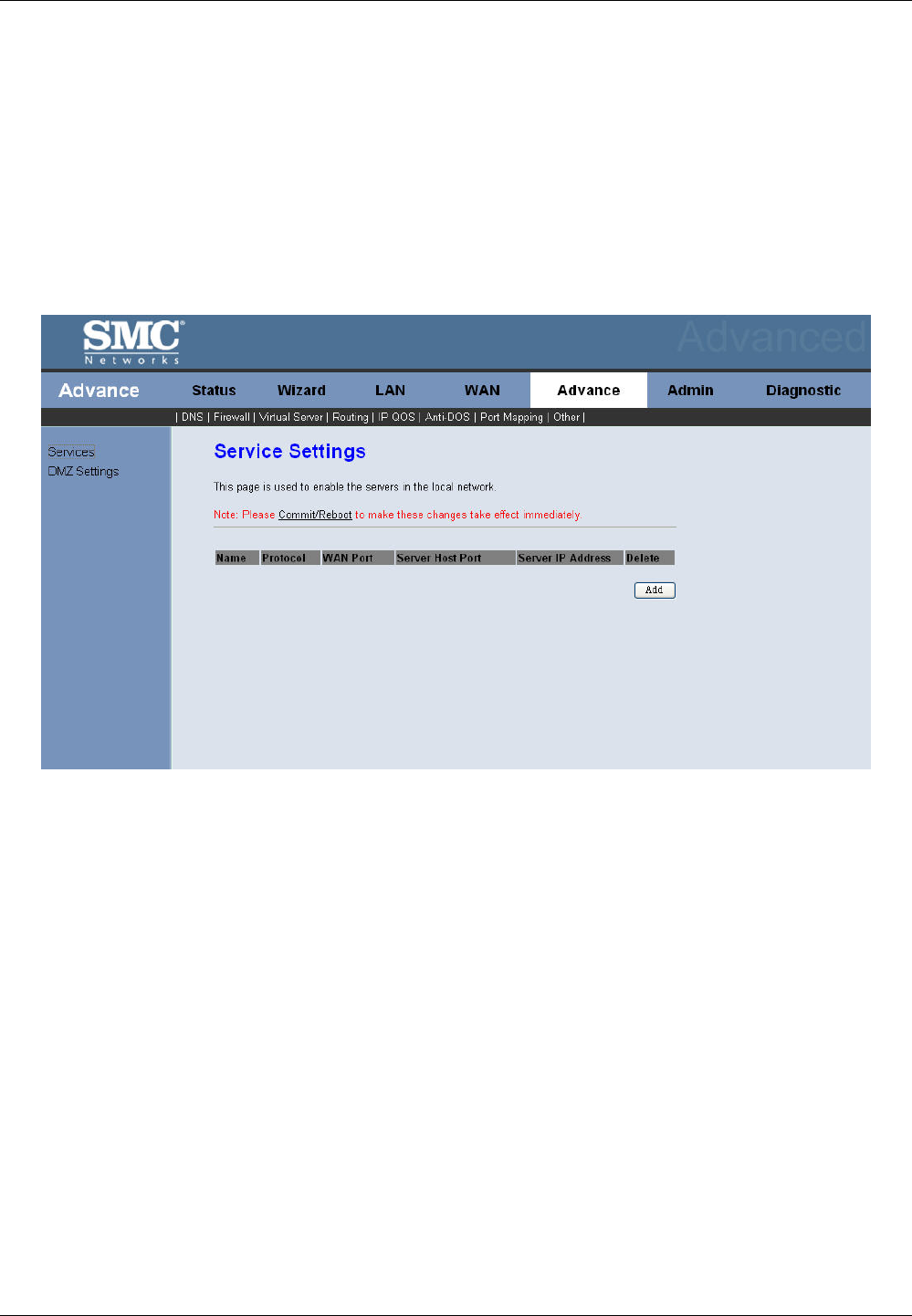 Click Services in the left bar to open the screen of Fig 3.6.3.1. This page is used to enable the servers in the