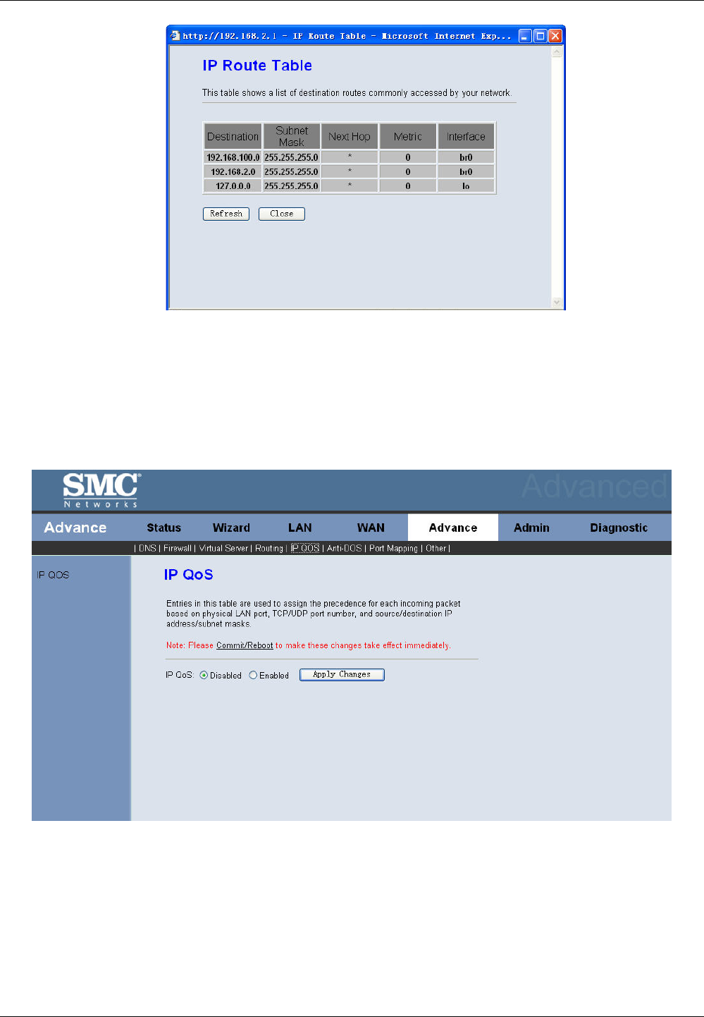 Click IP QoS in the sub-menu to open the screen of Fig 3.6.5. Entries in this table are used to assign the