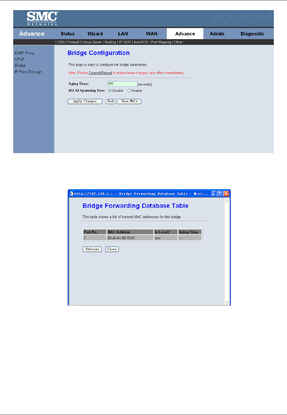 Click Show MACs button in Fig 3.6.8.3-1, the below window appears. This table shows a list of learned