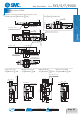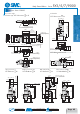 Base Mounted Valves Single Unit Series SY3/5/7/9000 Dimensions: Series SY5000 9.5 22 45.5 50.6 [57.6] 2 position single Grommet (G): SY5140(R)- G -02 -Q 17 15.5 M5 (External pilot port) 2-ø4.3 18 28 56 1/4 P, EA, EB port (For mounting) 48 8.3 (Light/Surge voltage suppressor) 35.2 17 15.5 Valves 18 Manual override A PE X B 35 4 B - + A EA P EB M5 4.3 (Pilot EXH port) 63.7 85.9 [88.1] G: Approx. 300 (Lead wire length) 1/4 (A, B port) 9.