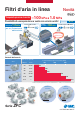 Filtri d'aria in linea Novità RoHS −100 1.0 Campo della pressione d'esercizio kPa a MPa Possibilità di usare pressione e vuoto con un'unica unità! Filtrazione 5 μm Pressione 1.0 MPa Livello di vuoto Pressione 0 a 1 MPa per es.) Protezione di elettrovalvole IN -100 kPa Livello di vuoto -100 a 0 kPa OUT IN OUT Ventosa Pezzo Protezione dell'apparecchiatura in ambienti polverosi Varianti della serie Diam. est.