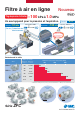 Filtre à air en ligne Variantes de filtre Débit d'aspiration Débit sous pression Série AF AF10 AF20 à 350 Pour la pression L/min (ANR) à 350 à 100 L/min (ANR) L/min (ANR)) ZFC77 7 Facile à installer sur le circuit Réduction de l'encombrement à 20 L/min (ANR) Sens de montage libre à 100 L/min (ANR) Pour L'aspiration ZFC54 4 à 100 ZFB L/min (ANR) à 200 ZFA L/min (ANR) Conditions de débit (pression positive) : pression d'alimentation 0.