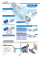 Serie ZFC Konstruktion Stückliste Pos. 1 2 3 4 5 Beschreibung Material Gehäuse Polycarbonat (Bestelloption: Polyamid) Deckel PBT Filterelement gesinterter Kunststoff Dichtung HNBR PBT Befestigungselement Anzahl 1 2 1 2 1 OUT Steckverbindungen e Bestell-Nr. Ersatz-Filterelement Bestell-Nr. Verwendbares Filtermodell Größe des Filterelements ZFC-EL-3 ZFC5 ø12 x ø8 x L20 ZFC-EL-4 ZFC7 ø16 x ø12 x L25 Lieferumfang 10 Stk. 10 Stk. r w q t IN Austausch des Filterelements Vorgehensweise 1.