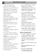 Säkerhetsanvisningar • Under tillagningen ska ugnsluckan vara stängd. • Vid omrörning i maten eller när tillagningen avslutats öppna först luckan 5 centimeter. Låt ångan avdunsta, och öppna sedan luckan helt. • Öppna aldrig förvaringsutrymmet (i förekommande fall) när ugnen är på eller fortfarande är varm. • Föremålen inne i förvaringsutrymmet kan vara mycket varma efter att ugnen använts. • Stäng av apparaten efter användning. • Dra aldrig i sladden för att dra ut kontakten.