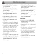 Säkerhetsanvisningar • Placera inga metallföremål, som husgeråd eller bestick, på hällens yta när den används eftersom de kan överhettas. • För inte in spetsiga metallföremål (bestick eller verktyg) i apparatens springor. • Häll inte vatten direkt på varma plåtar. • Håll ugnsluckan stängd vid tillagning. • När man ska röra om i maten eller när tillagningen avslutats ska man först öppna luckan 5 centimeter och hålla den i det läget i ett par sekunder, och låta ångan avdunsta, innan man öppnar luckan helt.