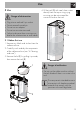 Use 3 Use Danger of electrocution • • • • • Plug into an earthed 3-pin socket. Do not remove the earth pin. Do not use an adapter. Do not use an extension cord. Failure to observe these warnings can lead to fire, electrocution or even death. EN 4. Fill the tank (2) with cool, clean water directly from the tap or using a jug, ensuring you do not exceed the maximum level on the tank. 2 3.1 Before first use 1. Remove any labels and stickers from the coffee machine. 2.