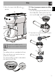 Use 3. Remove any excess coffee from around the edge of the filter holder. Attach the filter holder by lining up the handle with the and turning it to the right up to 4. Position the cup(s) under the filter holder spouts and press the dispense button. or position. Danger of burns • For one cup, fill the filter with a level measure of coffee (approx. 7 grams). • For two cups, fill the filter with two level measures. • To obtain a strong coffee, tamp down the coffee firmly.