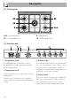 Use 3.3 Using the hob All the appliance’s control and monitoring devices are located together on the front panel. The burner controlled by each knob is shown next to the knob. The appliance is equipped with an electronic ignition device. Simply press the knob and turn it anticlockwise to the maximum flame symbol, until the burner ignites. If the burner does not light in the first 15 seconds, turn the knob to and wait 60 seconds before trying again.