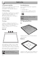Advarsler • Ikke sett hermetikkbokser eller lukkede beholdere inn i ovnsrommet. • Ta ut alle stekebrett og rister som ikke brukes til stekingen. • Ikke dekk til bunnen i ovnsrommet med aluminiumsfolie eller tinnfolie. • Ikke sett gryter eller stekebrett direkte på bunnen i ovnsrommet. • Ved bruk av bakepapir må det plasseres slik at det ikke hindrer sirkulasjonen av varmluft i ovnsrommet. • Ikke bruk den åpne døren for å sette gryter eller stekebrett på det innvendige glasspanelet.