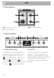 Opis 2.2 Płyta kuchenna AUX = Palnik pomocniczy SR = Palnik półszybki UR-3c = Palnik ultraszybki 2.3 Panel sterowania 1 Pokrętła palników płyty 2 Kontrolka Do włączania i regulowania palników płyty. Aby włączyć dane palniki wcisnąć i przekręcić pokrętło w lewo na wartość . Przekręcać pokrętło w zakresie od Jej włączenie wskazuje, że piekarnik znajduje się w fazie nagrzewania. Wyłącza się, gdy temperatura osiągnie ustawioną wartość.
