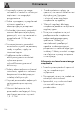 Ostrzeżenia Uszkodzenie urządzenia • Nie stosować na częściach szklanych ściernych lub agresywnych detergentów (np. produktów z granulkami, odplamiaczy i metalowych gąbek). • Ewentualnie używać drewnianych lub plastikowych narzędzi. • Ruszty i blachy powinny być wkładane w boczne ramki, aż do całkowitego zatrzymania się. Mechaniczne blokady bezpieczeństwa, które zapobiegają ich wyjęciu powinny być odwrócone w dół i w kierunku tylnej części komory pieczenia. • Nie siadać na urządzeniu.