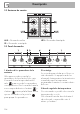 Descripción 2.2 Encimera de cocción AUX = Quemador auxiliar SR = Quemador semirrápido UR2 = Quemador ultrarrápido 2.3 Panel de mandos 1 Mandos de los quemadores de la encimera Útiles para encender y regular los quemadores de la encimera. Pulse y gire los mandos hacia la izquierda hasta el valor para encender los quemadores correspondientes. Gire los mandos hasta la zona comprendida entre el máximo y el mínimo para regular la llama. Vuelva a poner los mandos en la posición para apagar los quemadores.