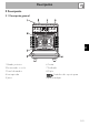 Descripción Es útil para visualizar la hora actual, seleccionar las cocciones programadas y programar el temporizador minutero. 5 Mando de funciones Las diferentes funciones del horno son adecuadas para diferentes tipos de cocción. Tras haber seleccionado la función deseada, configure la temperatura de cocción mediante el mando de la temperatura. 2.4 Otras partes Guías de posicionamiento El aparato dispone de guías para colocar bandejas y rejillas a distintas alturas.