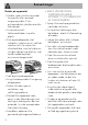 Bemærkninger Skader på apparatet • På dele i glas må ikke anvendes skurepulver eller ætsende rengøringsmidler (f. eks. pulverprodukter, pletfjernere eller stålsvampe). • Anvend eventuelt køkkenredskaber i træ eller plastik. • Riste og bradepander skal indsættes i sideskinnerne, indtil de standser helt. De mekaniske sikkerhedslåse, som forhindrer en utilsigtet udtrækning af disse, skal vende nedad og mod ovnrummets bageste del. • Sæt dig ikke på apparatet. • Brug ikke dampstråler til rengøring af apparatet.