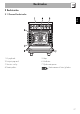 Beskrivelse 4 Ur med programmeringsenhed Afkølingsventilator Nyttig til visning af klokkeslæt, indstilling af programmerede tilberedninger og til at programmere timeren med minuttæller. 5 Funktionsknap Ovnens funktioner er tilpasset forskellige former for tilberedning. Efter at have valgt den ønskede funktion, indstilles tilberedningstemperaturen med temperaturknappen. 2.4 Andre dele Positionsriller Apparatet er forsynet med riller til placering af plader og riste i forskellig højde.