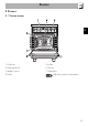 Kuvaus Jäähdytystuuletin 3 Lämpötilakytkin Tämän kytkimen avulla on mahdollista valita paistolämpötila. Käännä kytkintä myötäpäivään halutun arvon kohdalle, minimi- ja maksimiarvojen välillä. 4 Ohjelmointilaitteen kello Hyödyllinen oikean kellonajan näyttöön, ohjelmoitujen paistoaikojen asetukseen ja ajastimen ohjelmointiin. 5 Toimintokytkin Uunin eri toiminnot soveltuvat erilaisille paistotavoille. Kun haluttu toiminto on valittu, aseta paistolämpötila lämpötilakytkimen avulla.