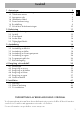 Innehåll 1.1 1.2 1.3 1.4 1.5 1.6 1.7 Allmänna säkerhetsanvisningar Tillverkarens ansvar Apparatens syfte Identifikationsdekal Denna bruksanvisning Bortskaffning Så här läser du bruksanvisningen 2 Beskrivning 2.1 2.2 2.3 2.4 2.5 Allmän beskrivning Spishäll Kontrollpanel Andra delar Tillgängliga tillbehör 3 Användning 3.1 3.2 3.3 3.4 3.5 3.6 3.