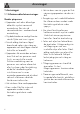 • Om det kokar över eller rinner över, torka bort vätskan från spishällen. • Var noga med att inte hälla ut sura ämnen på spishällen, som t.ex. citronsaft eller vinäger. • Ställ inte tomma kastruller eller stekpannor på tända kokzoner. • Vid repor eller sprickor, eller om glaskeramikhällens yta skulle gå sönder, ska apparaten omedelbart stängas av. Koppla bort eltillförseln och kontakta teknisk service.