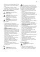 20 Farm houses; staff kitchen areas in shops, offices and other working environments – By clients in hotels, motels, bed and breakfast and other residential type environments WARNING: Keep ventilation openings, in the appliance enclosure or in the built-in structure, clear of obstruction. WARNING: Do not use mechanical devices or other means to accelerate the defrosting process, other than those recommended by the manufacturer. WARNING: Do not damage the refrigerant circuit.