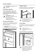 Vedligeholdelse og rengøring ADVARSEL! Risiko for skader på mennesker eller apparat. • Sluk for apparatet, og tag stikket ud af kontakten inden vedligeholdelse. • Apparatets kølesystem indeholder kulbrinter. Kun en faguddannet person må udføre vedligeholdelse og opladning af enheden. • Undersøg jævnligt apparatets afløb, og rengør det, hvis det er nødvendigt. Hvis afløbet er blokeret, ophobes afrimningsvandet i bunden af apparatet.