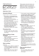 • Producenten fralægger sig ethvert ansvar, hvis de nævnte sikkerhedsregler ikke overholdes. • Dette apparat opfylder gældende EØFdirektiver. FORSIGTIG! Se monteringsvejledningen vedr. installation. Krav til lufttilførsel Der skal være tilstrækkelig luftstrøm bag apparatet. 5 cm min. 200 cm2 min. 200 cm2 BETJENING Aktivering 1. Sæt stikket i stikkontakten. 2. Drej termostatknappen med uret til en mellemindstilling. Deaktivering Sluk for apparatet ved at dreje termostatknappen til stilling "O".