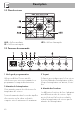 Description Il s’allume lorsqu’on active le cycle de nettoyage automatique (pyrolyse). Le fonctionnement de la turbine crée un flux d’air normal qui s’échappe par l’arrière de l’appareil et peut continuer pendant un court moment même après son extinction. 6 Manettes des brûleurs du plan de cuisson Utiles pour allumer et régler les brûleurs du plan. Enfoncez et tournez les manettes dans le sens inverse des aiguilles d’une montre sur la valeur pour allumer les brûleurs correspondants.