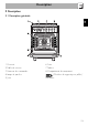 Description 2.2 Plan de cuisson AUX = Brûleur auxiliaire SR = Brûleur semi-rapide. UR2 = Brûleur ultra-rapide 2.3 Panneau de commande 1 Horloge de programmation 3 Voyant Utile pour afficher l’heure actuelle, sélectionner une cuisson programmée ou programmer le temporisateur minuteur. Il clignote pour indiquer que le four est sur le point d’atteindre la température réglée ; lorsque la température est atteinte, il reste fixe.